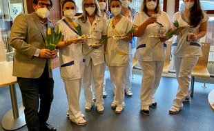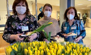 zdeOsmý březen je nejen v českém kalendáři Mezinárodním dnem žen a my jsme si i letos velmi přáli vykouzlit dnes všem příslušnicím něžného pohlaví úsměv na tváři. Každé ženě, která dnes dopoledne prošla vestibulem naší nemocnice, popřál ředitel MUDr. Tomáš Canibal vše nejlepší ke Dni žen a předal jí kvítek žlutého tulipánu. Pro pacientky a zaměstnankyně byla připravena také lahodná káva a dýňové a švestkové koláče, které napekl tým našeho stravovacího provozu. Domácí ovocné koláče jsme připravili také pro všechny pacientky na lůžkových odděleních. Ženy byly mile překvapeny a potěšeny, o což nám šlo především. Celkem jsme rozdali přes čtyři stovky tulipánů a obdrželi minimálně stejný počet úsměvů!