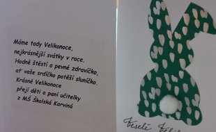 Výsledky velikonočního tvoření karvinské mateřské školky Školská opět potěšily naše pacienty na oddělení následné péče. Roztomilými přáníčky se zajíčky děti a jejich paní učitelky zpříjemnily blížící se svátky jara také personálu oddělení, který má vždy lepší den, když jsou pacienti usměvaví a v dobré náladě.