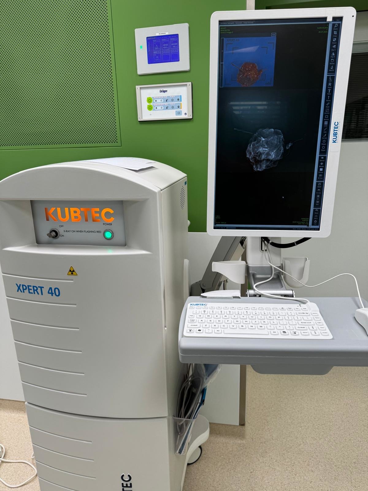 • Vyšetření vzorků patologem - pomocí kryostatu - vyšetření vzorků během operace k ověření, zda byl nádor zcela odstraněn a zda jsou přítomny metastázy v sentinelových uzlinách.